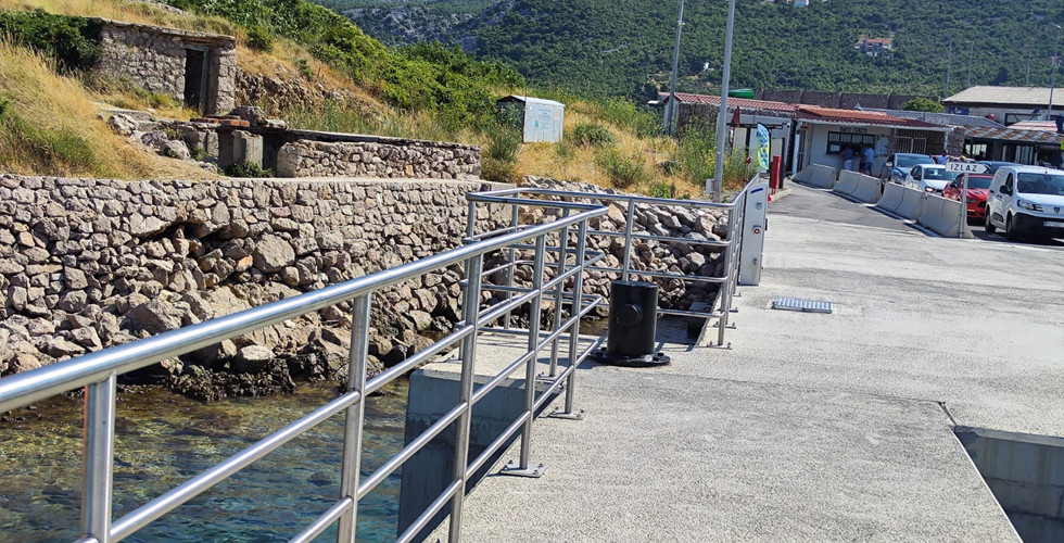 Zaštitna ograda duljine 95 metara postavljena je na gatu Trajektnog pristaništa Stinica, s ugovorenom cijenom radova od 25.900,00 € bez PDV-a, odnosno 32.375,00 € s PDV-om.