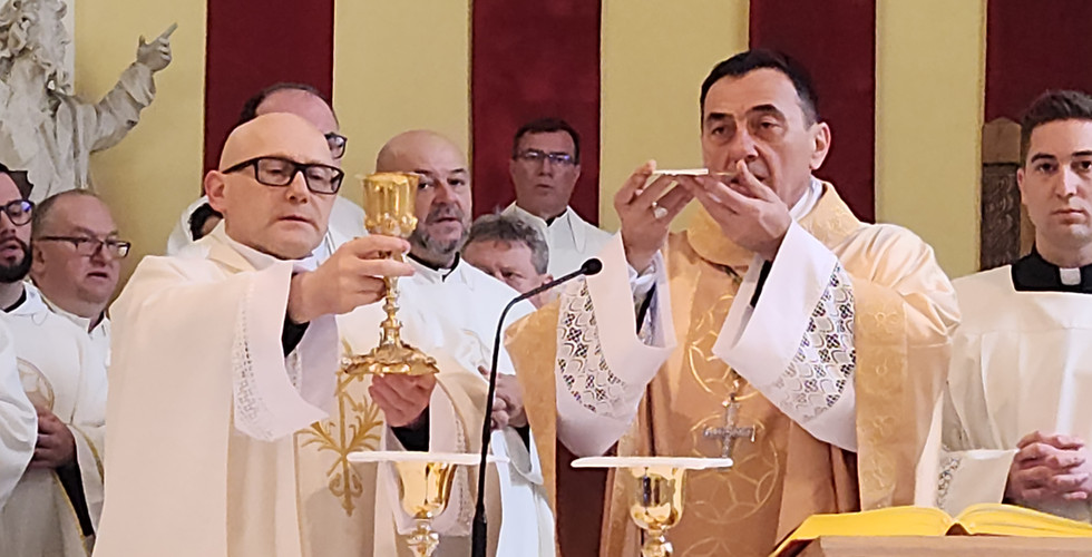 Nakon misnog slavlja svećenici, zajedno s biskupom Medom, okupili su se oko bratskog stola u blagovalištu Biskupskog doma.