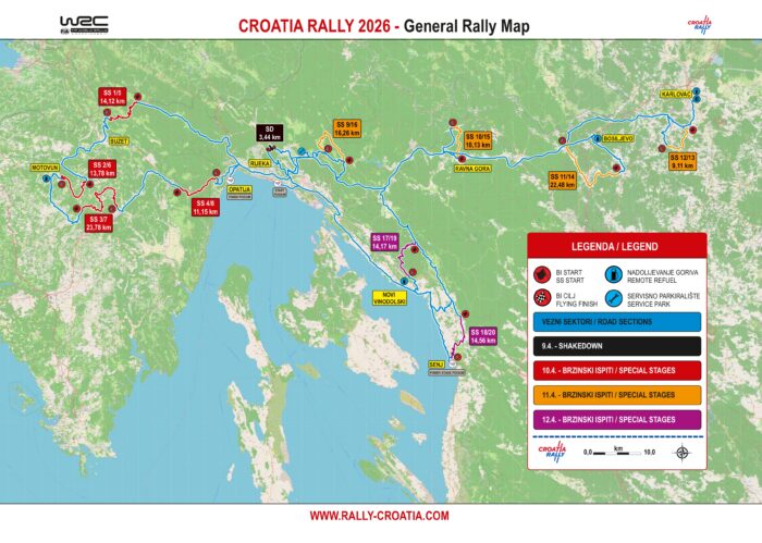 Posebnu pažnju ove godine privlači dionica Alan – Senj, koja se vozi u nedjelju, 12. travnja 2026. godine, predstavljajući pravi ispit zrelosti za vozače, ali i vizualni spektakl za publiku. Ova etapa vodi karavanu iz očaravajuće divljine Krivog Puta direktno prema jadranskoj obali, spuštajući se niz padine koje nude jedan od najljepših pogleda u cijelom WRC kalendaru.
